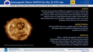 G2 (Moderate) Geomagnetic Storm Watch Extended into 23 Mar | Sunday, March 22, 2026 - 21:14 |