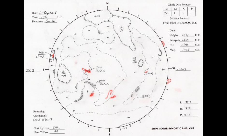 Slate.com posted a video showcasing each hand-drawn Solar Synoptic Analysis completed by NOAA Space Weather Forecasters during the past 43 years. The video compiles approximately 15,000 images and animates sunspots, coronal holes and other notable features from June, 1972 through June, 2015. Watch the video here!
