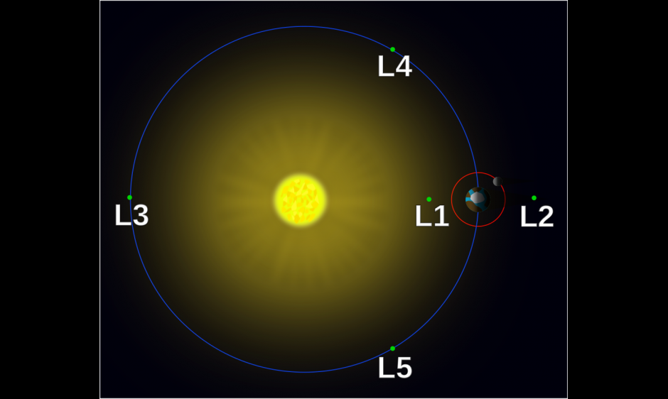 "Lagrange points simple" by Xander89 - https://en.wikipedia.org/wiki/File:Lagrange_points2.svg. Licensed under CC BY 3.0 via Wikimedia Commons - http://commons.wikimedia.org/wiki/File:Lagrange_points_simple.svg#/mediā¦