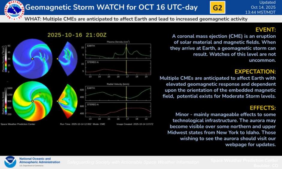 G2 (Moderate) Geomagnetic Storm Watch 16 Oct