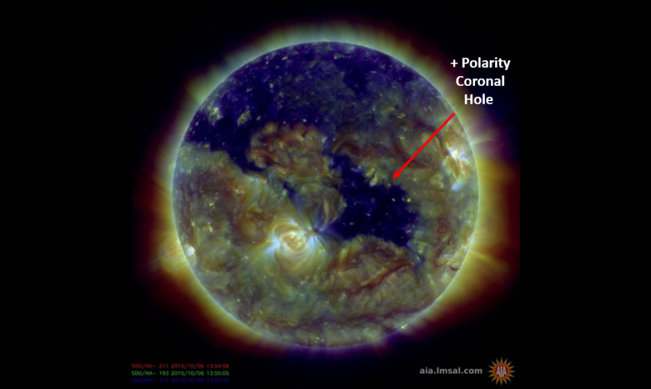 Late on 07 October (EDT), SWPC forecasters are expecting the arrival of a large, equatorial coronal hole high speed stream (CH HSS). Geomagnetic conditions are expected to increase to G2 (Moderate) conditions on 07 and 08 October as a result. On it's previous transit 27 days ago, enhanced geomagnetic conditions were experienced with this positive polarity CH HSS. Check back often for further updates.