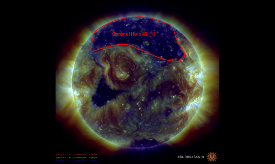 A positive polarity coronal hole in the northern hemisphere is expected to cause periods of active geomagnetic field activity (Kp=4) on 02-03 Jan.
