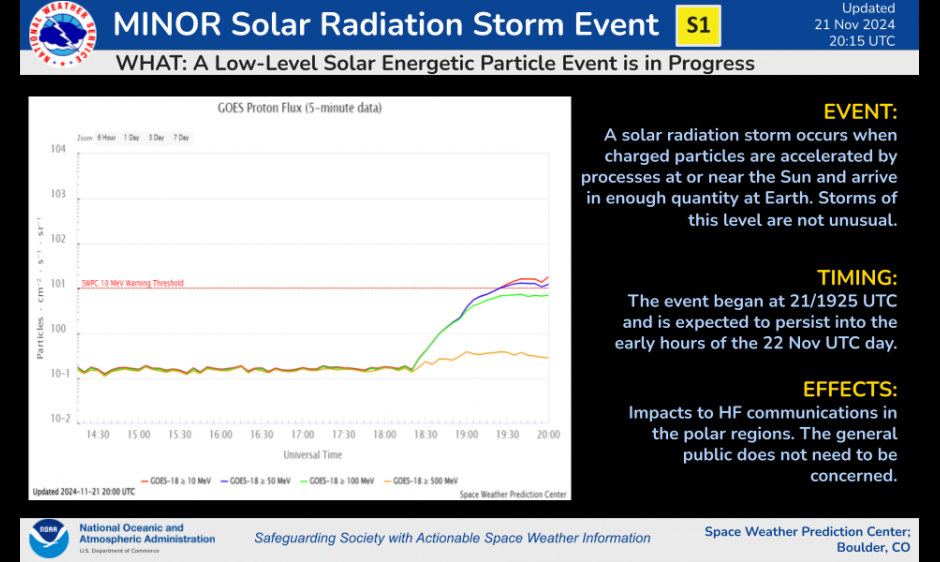 Minor (S1) Solar Radiation Storm In Progress - 21 Nov 2024