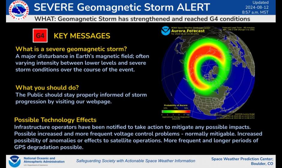 Severe (G4) Geomagnetic Storms Observed - 12 Aug 2024