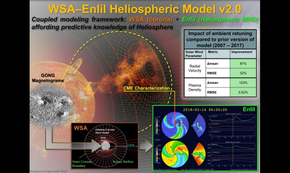 SWPC is pleased to announce the successful implementation of the upgraded WSA-Enlil heliospheric model v2.0 (the first upgrade since the initial implementation in late 2011), effective with the 1400UTC model run on May 29. This upgrade provides improvements to the existing code base and anticipates the implementation of the Air Force Data Assimilative Photospheric Flux Transport (ADAPT) model in the near future. The most significant impact of this upgrade is a rescaling of the WSA inputs to more accurately describe the ambient solar wind conditions, and thus offering improved CME arrival time predictions. For more detailed information on the upgrade, please consult NWS Service Change Notice 19-36