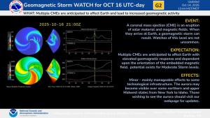 G2 (Moderate) Geomagnetic Storm Watch 16 Oct | Tuesday, October 14, 2025 - 19:51 |
