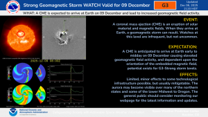 Strong (G3) Geomagnetic Storm WATCH Valid for 09 Dec 2025 | Sunday, December 7, 2025 - 04:42 |